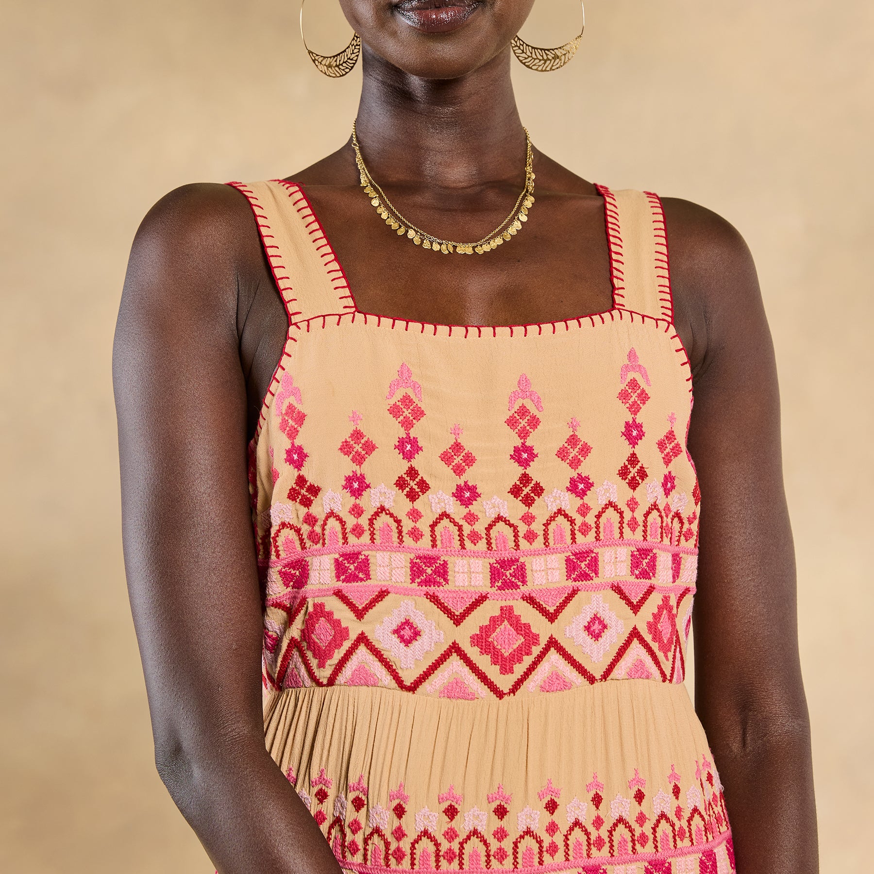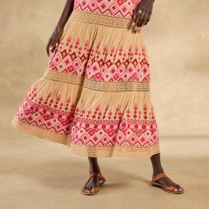 From spring days through summer nights and beyond. you’ll reach for our Garden Sunset Dress again and again! Sundown shades of pink. coral and yellow brighten a neutral background—with intricate all-over embroidery. lace insets throughout. decorative strap stitching and a center back zipper. Viscose/cotton/poly. Hand wash. Imported. Exclusive. Sizes XXS (00). XS (0–2). S (4–6). M (8–10). L (12–14). XL (16–18). Approx. 49.5l.