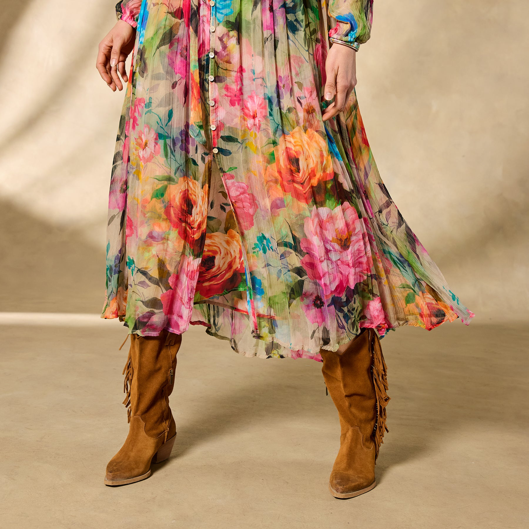 Be a heavenly vision wherever you go in our floaty Halcyon maxi. A vibrant exploded floral pattern further elevates an already stunning jacquard fabric; with shell buttons. elastic cuffs. removable belt and separate printed slip. Viscose. Machine wash. Imported. Exclusive. Sizes XXS (00). XS (0–2). S (4–6). M (8–10). L (12–14). XL (16–18). Approx. 49l.