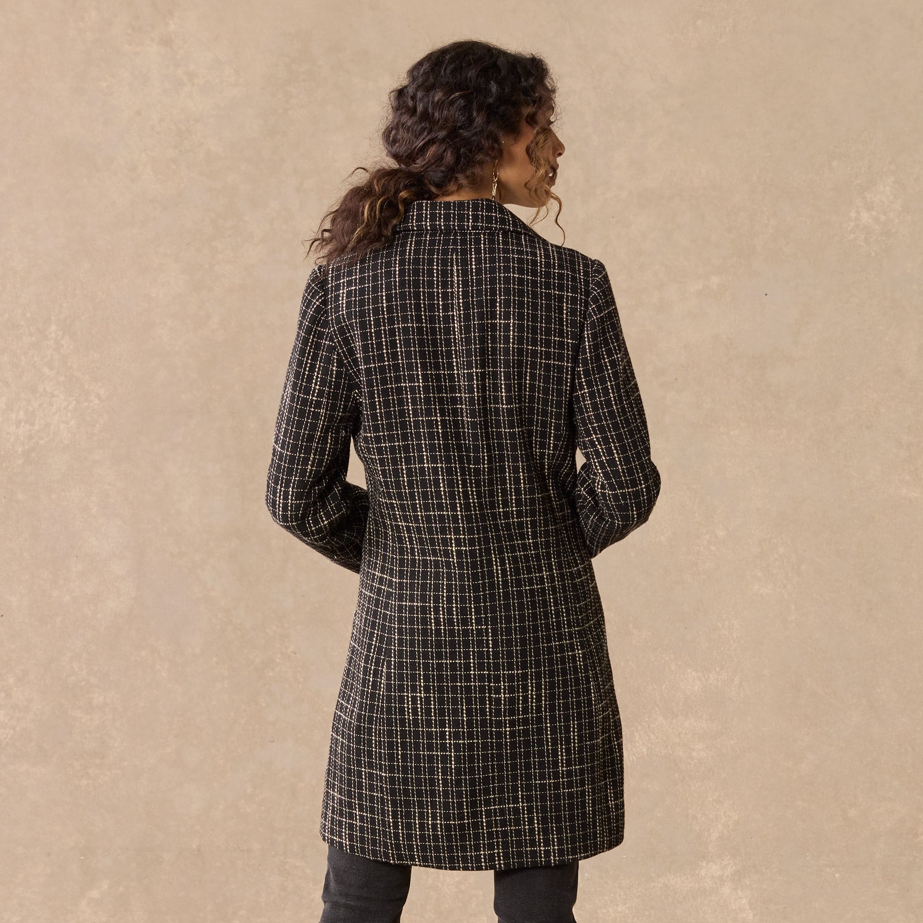 Our ladylike coat is slightly fitted. in a slubby plaid. with three-button closure. flap pockets and a standout floral lining. Soft and comfortable. midi-length. with a nice A-line shape. Wool/polyester. Dry clean. Imported. Exclusive. Sizes XXS (00). XS (0?C2). S (4?C6). M (8?C10). L (12?C14). XL (16?C18). Approx. 35l.
