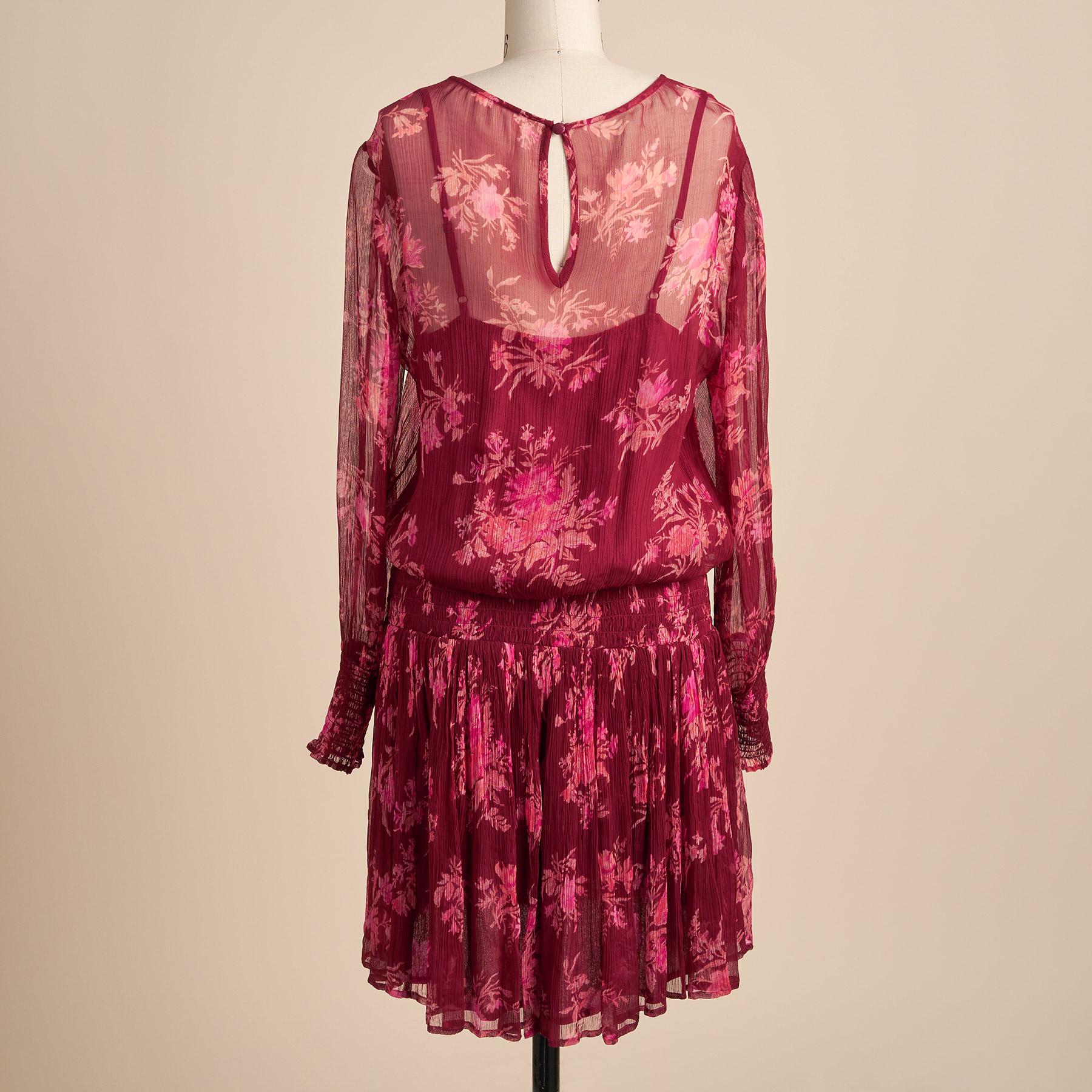 So versatile from day to night. our lovely crinkle chiffon. smocked waist dress. Romantic and feminine. with pintuck details. keyhole back. smocked sleeve cuffs and double tiered. hi-lo hem. Fully lined with adjustable strap cami. Cupro. Hand wash. Imported. Exclusive. Sizes XS (0-2). S (4-6). M (8-10). L (12-14). XL (16-18). XXL (2022). Approx. 36-1/2l.